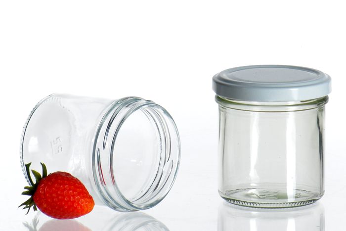 Schraubglas rund.Terrinenform ohne Schulter66er Twist-Off Deckel in weiss, silber oder schwarz.